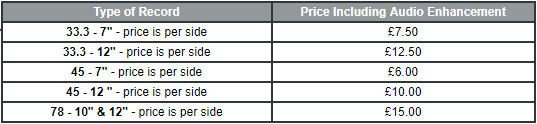 As with our cassette transfer service we offer audio enhancement on all our vinyl and LP transfers. Audio enhancement is included in the pricing for our record transfers as the recordings really benefit from the enhancement. If you would prefer not to have your recording enhanced to reduce or remove static pops and hisses please tell us before we commence the transfer.